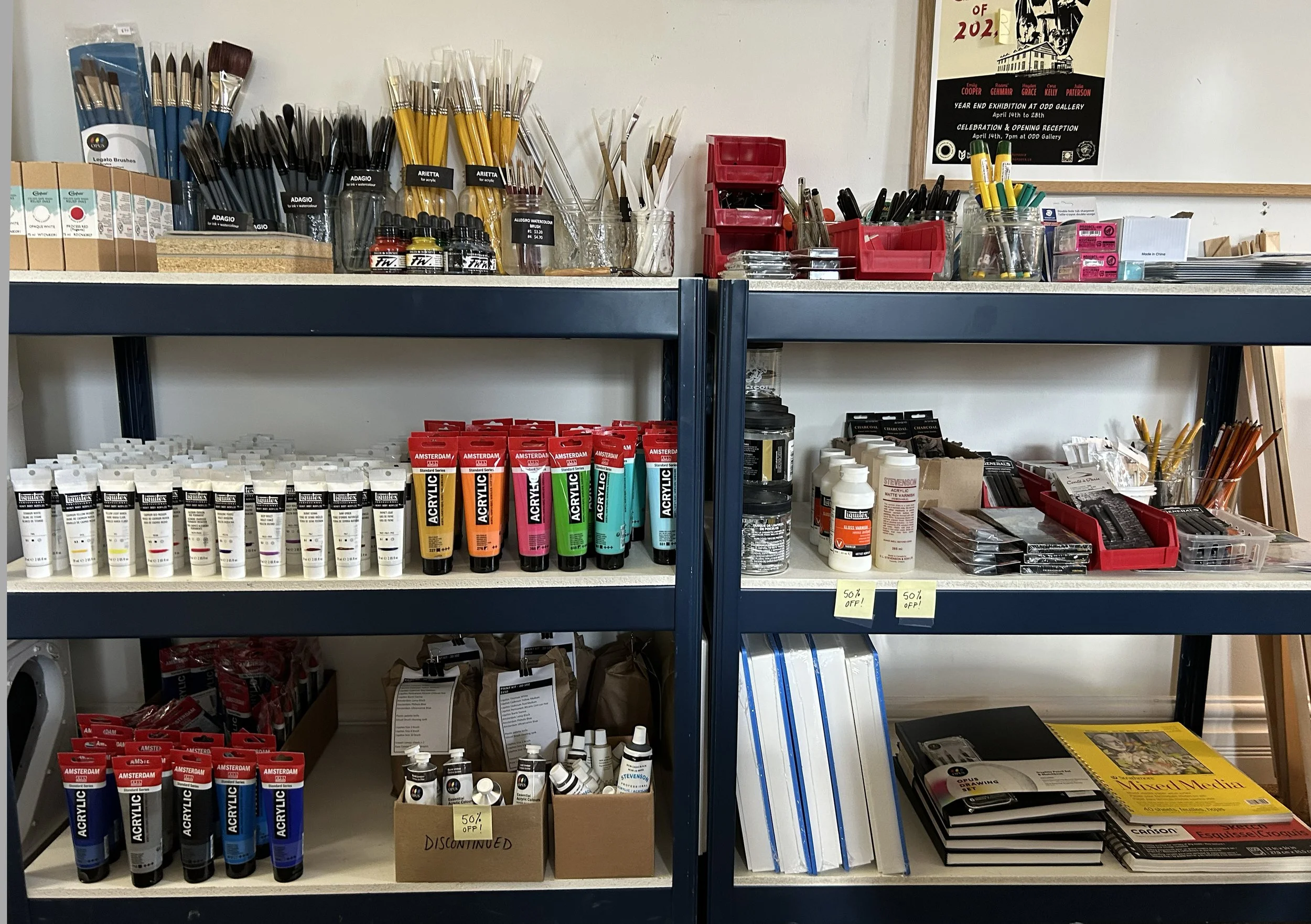The SOVA Art Store carries materials needed for courses as well as some basic art supplies. The store is open during SOVA Office hours and is cash-only. Access to the Art Store is limited to SOVA students.
